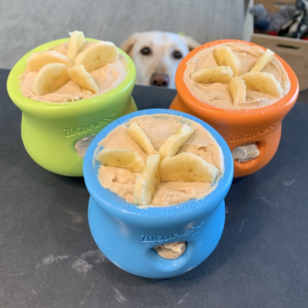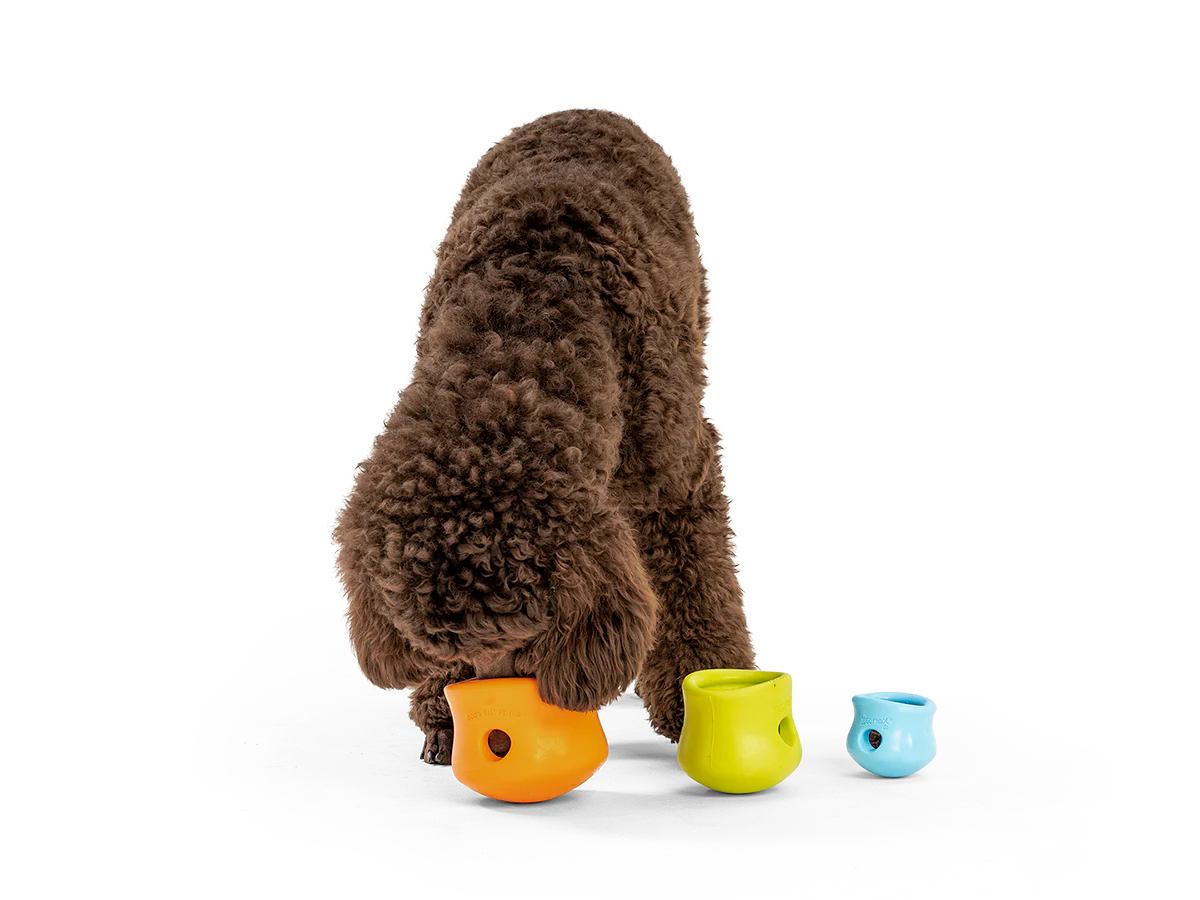 Our best-selling customizable puzzle and treat toy is designed to be filled with a dog's favorite kibble or treats. Toppl's soft, rounded inner 'teeth' contain a contoured cavity to hold treats in place until your dog nudges them out. To change up the challenge, simply connect the XL and Large or Small and Large together.